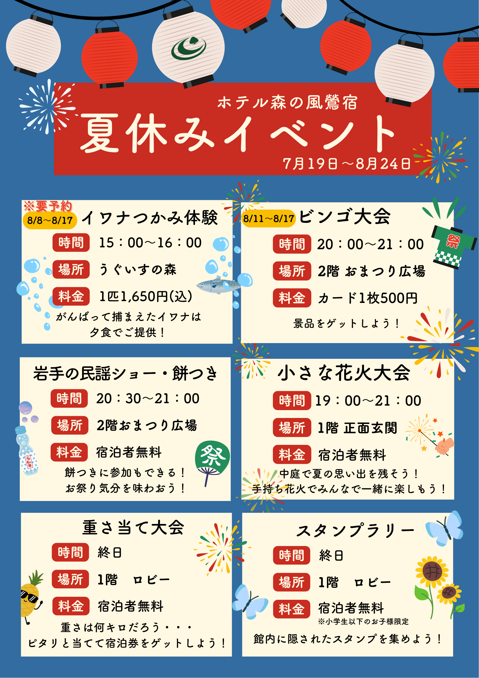 トップページ 新着情報一覧 夏休みイベント2025 2025.06.03新着情報 新着情報一覧へ 夏休みイベント2025 夏休みイベント2025を開催いたします! みなさまのご予約を心よりお待ちしております! 新着情報一覧に戻る