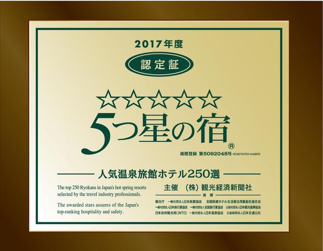 【人気温泉旅館ホテル250選】【5つ星の宿】に今年も入選しました♪